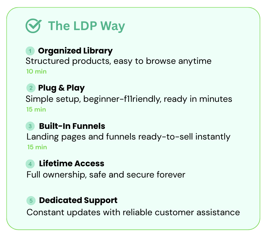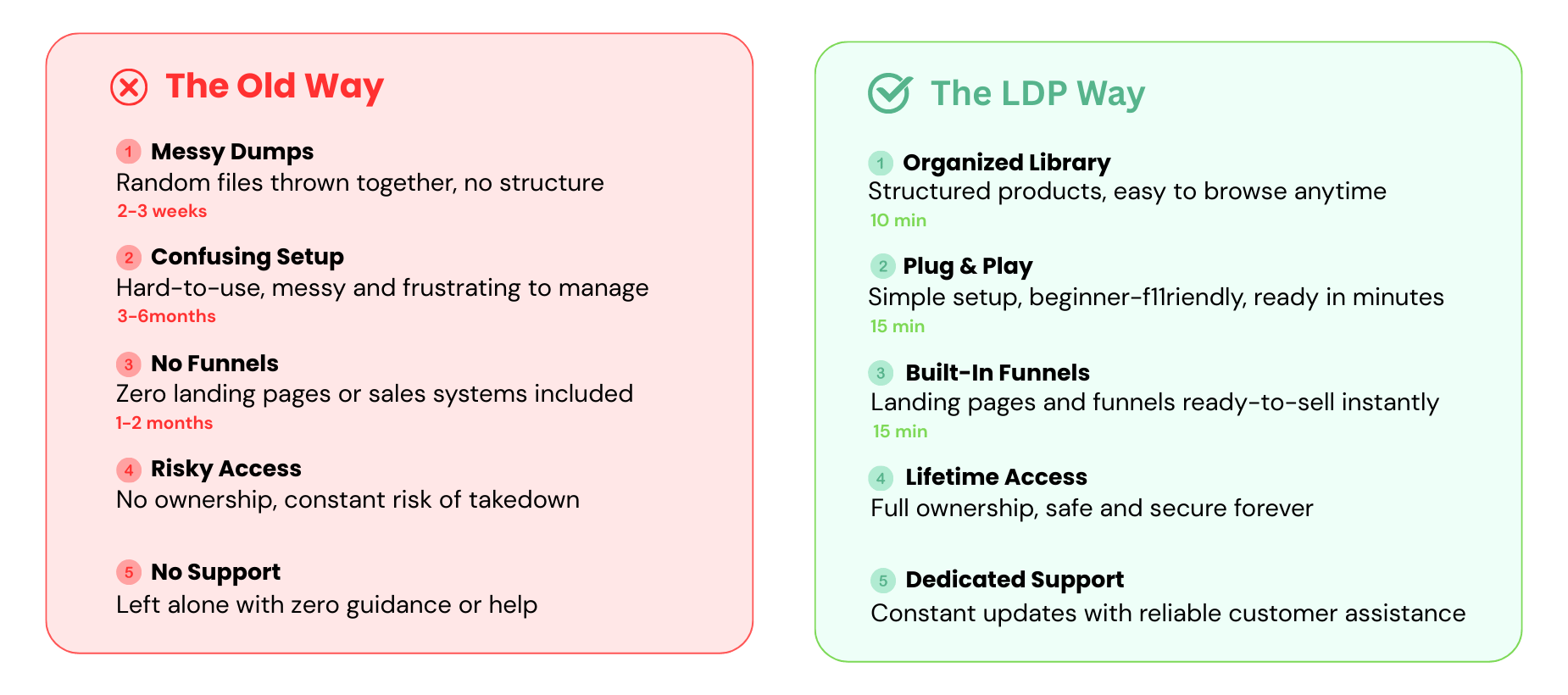 Join 5,000+ entrepreneurs who started selling digital products with LDP. Real people. Real results.